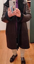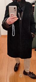 cappotto in montone nero completamente reversibile, tasche comprese, allacciatura con cerniera, taglia 42/44 Gerard Darel Paris.