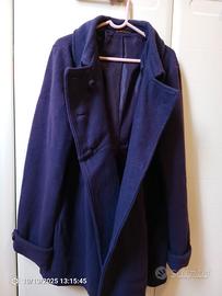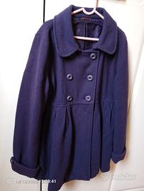 Cappotto doppiopetto in panno viola 100% poliestere di buona qualità taglia M larghezza spalle 39cm, lunghezza 75 cm. Maniche con risvolto e 2 bottoni , fodera in raso. Come nuovo, nessun difetto.