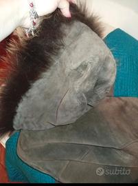 cappotto in pelle camosciata vintage in ottime condizioni bordatura cappello in pelliccia di Murmanski.