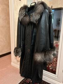 Esclusivo cappotto lungo in pregiata vera pelle nera, caratterizzato da un maestoso collo e ampi polsini in vera volpe argentata. Un capo invernale di lusso, elegante e senza tempo, perfetto per chi cerca calore e stile.