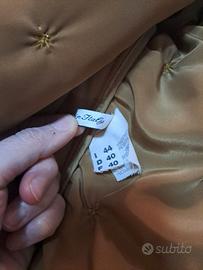 Cappotto corto in vera pelle color ocra con collo in pelliccia vera taglia 44 comoda,veste fino a taglia 48
