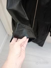 Cappottino in vera pelle nera, tg. M ,veste dalla 40 alla taglia 46 . Maniche che si possono risvoltare a seconda dell'altezza della persona.