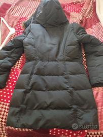 cappotto piumino donna in piuma d'oca nero, sagomato lungo, vestibilità ottima caldo e confortevole, con cappuccio come in foto misusa 44