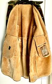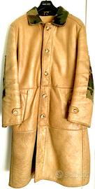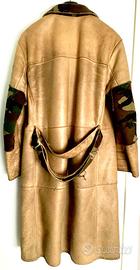 cappotto in vera pella , con intarsi militari e finta pelliccia sul collo