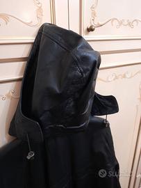 Cappotto uomo in pelle nera con cappuccio. Qualità buona, usato pochissimo, taglia 58. Prezzo trattabile.