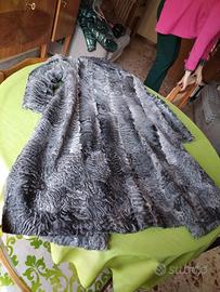 Pelliccia di astrakan di colore grigio, marca "Pina Gagliardo pellicce". Lunghezza cm 106, lunghezza manica cm 57, larghezza manica cm 21, larghezza sotto manica circa cm 58-60. La pelliccia, di buona qualità, è stata poco usata ed è in ottime condizioni.