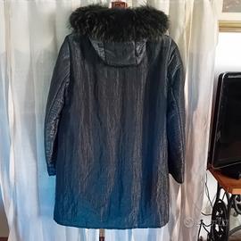 cappotto da donna con zip e alamari in camoscio, interno in pelo di montone staccabile, cappuccio con pelliccia. taglia 46 ma ci sono le misure in foto.