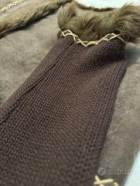 Vendo cappotto dal design unico, realizzato in tessuto di lana peluche, effetto suede con maniche in maglia e dettagli in pelliccia sintetica su colletto, bordo e polsini, lāideale per chi cerca comfort e calore. Le cuciture decorative a riquadri e i bottoni in legno lo rendono un capo originale e accogliente. Mai usato.