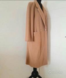 Cappotto invernale lungo, lana beige, 2 tasche, doppiopetto 2+1 bottoni, spacco dietro 36, foderato, tg.L donna Lana 80%, poliammide nylon 20%. Fodera: acetato 60%, bemberg 40% Misure esterne: lunghezza 117, spalle 46, maniche 61, colletto 10.5, torace 55, vita 54, fianchi 55, fondo 57. Manichino tg.42 M vedi foto misure Vintage in ottime condizioni Senza difetti MADE IN ITALY