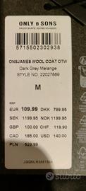 VENDO NUOVISSIMO CAPPOTTO DA UOMO INVERNALE DELLA ONLY E SONS MISTO LANA MOLTO ELEGANTE DI COLOR GRIGIO SCURO TAGLIA M/L.