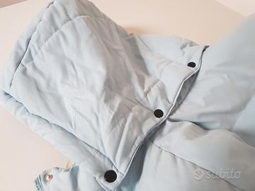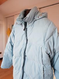 Vendo cappotto donna Invicta in vero piumino d'oca, color celeste, taglia 44 con cappuccio staccabile e doppie tasche anteriori.