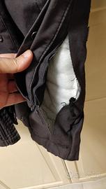 Cappotto invernale imbottito Khujo - taglia L. Rivestimento esterno 100% cotone, con fodera interna in poliestere. Con 7 tasche frontali, di cui una con chiusura a zip e quattro con chiusura con bottoni metallici a pressione. La tasche interne sono 2. La chiusura centrale è doppia, chiusura a zip e con bottoni metallici a pressione. C'è anche una cinta ad altezza vita con ganci metallici. Presenta una strappo del rivestimento lato sinistro.