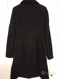 Cappotto L'EQUIPE, originale, tg. 42, colore nero, 50% lana, 50% poliestere, abbottonatura doppia, spalle misura cm 36, lunghezza cm 98, usato poche volte, vendo a 15 euro.
