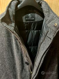 Cappotto monopetto MONCLER tweed, pied de poule, senza applicazioni, collo alto, maniche lunghe, interno foderato in piloni con cerniera, chiusura con bottoni nascosti, multitasche
