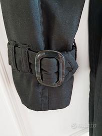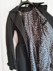 Splendido cappotto leggero da donna modello "trench coat", perfetto per la mezza stagione (autunno, primavera). Giacca vintage. Stile classico dalla forma svasata a campana, spalle NON imbottite, ampio sui fianchi. In cotone e poliestere, lunghezza midi sotto le ginocchia. Colore nero, Divided by H&M. Taglia EU 38, IT 42, M. Con bottoni e colletto doppiopetto, mostrine sulle spalle e sui polsi, cintura in vita, 2 tasche, taschino interno e fodera maculata. Misure del cappotto steso in piano: Lunghezza 91 cm Spalle 37 cm Petto 46 cm Vita 40 cm Peso 800g Condizioni perfette, bottoni utilizzati appena rinforzati. Lavato.