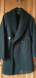 Cappottino donna nero con collo a scialle, la sciarpa di lana si può staccare, usato pochissimo.