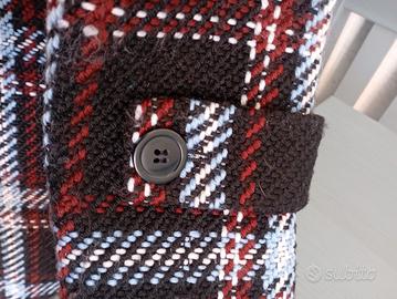 Cappotto a quadri blu con bottoni blu, lungo, molto elegante