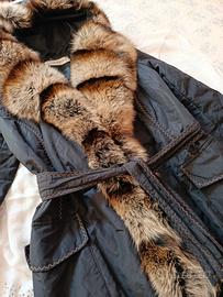 Bellissimo cappotto lungo imbottito e foderato con pelliccia vera lungo tutto il bordo, cappuccio compreso. Caldissimo e avvolgente. Senza difetti, perfetto per l'inverno. Le misure sono in foto. Adatto alla tg 42/44