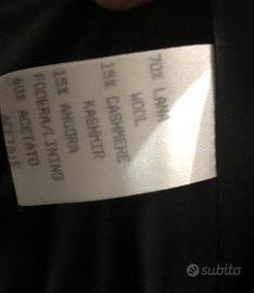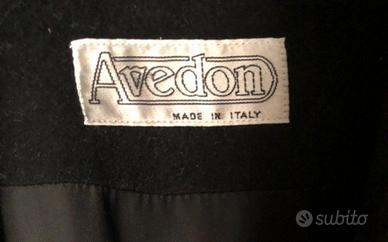 cappotto nero, lungo, nero, marca Avedon Made in Italy, godet nella parte inferiore. raso all'interno.