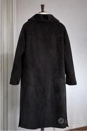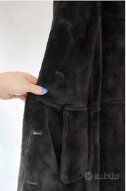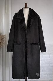 Cappotto lungo da donna taglia IT48 - EU46 - GB16, sartoria senza marca, colore nero/antracite. Modello effetto montone/shearling: esterno tipo camoscio e interno morbido tipo pelliccia (materiale sintetico: 63% acrilico, 37% poliestere ). ✅ Molto caldo, perfetto per inverno ✅ Collo ampio e tasche frontali ✅ Chiusura con bottoni Condizioni: mai indossato Spedisco con imballo accurato. Per misure (spalle/petto/lunghezza) scrivimi pure.