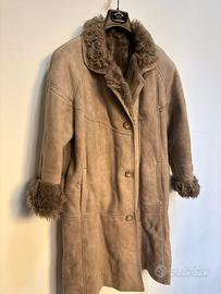 Cappotto lungo in montone shearling beige con interno completamente in pelliccia naturale. Modello caldo e avvolgente perfetto per la stagione invernale.