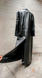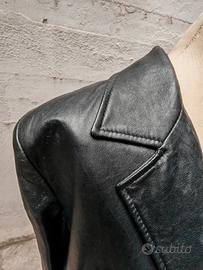 Cappotto lungo in vera pelle LEGENDARY JACKETS 1957 FIRENZE di colore nero Tg 50 Originale vintage fine anni 90 Made in italy 2 grandi tasche Chiusura a 4 bottoni Spacco posteriore Presenta due piccoli segni impercettibili come si evince nell ultima foto Spalle 46 Ascella ascella 54 Manica 57 Lunghezza 130 Roma zona ritiro TORVERGATA NUOVA