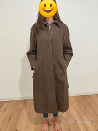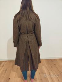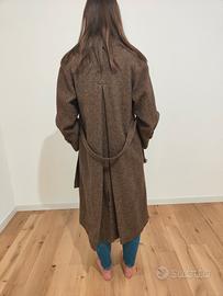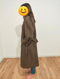 Vendo cappotto lungo da donna Max Mara a spina di pesce, marrone, con cintura.