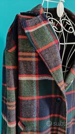 Cappotto Stradivarius a quadri colore verde bottiglia e inserti in arancio e bordeaux. Completamente foderato