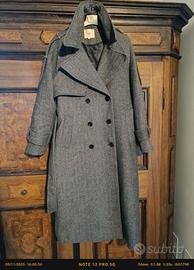 Bellissimo cappotto doppiopetto, designer Suncoo Paris, stile trench, cintura in vita, spacco dietro, foderato, vestibilità oversize, 50% Lana 45% Poliestere 5% Altre fibre. Molto caldo. Stiloso ed estremamente morbido e piacevole al tatto. Misura 0, credo corrispondente a una S o 40.