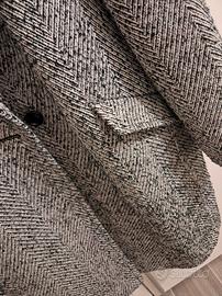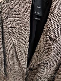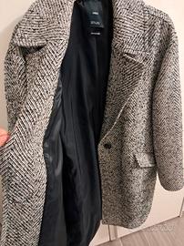 Bellissimo cappotto Mango. Taglia L ma il modello è leggermente oversize e sta bene anche ad una taglia XL. Praticamente nuovo, indossato pochissime volte. Cool e di tendenza. Motivo spina di pesce. Con tasche. Molto caldo. Interamente foderato.