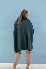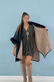 Cappotto Mantella Bordata Ecopelliccia Verde AMARA. mantella bordata in ecopelliccia