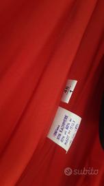 Caldo cappotto vintage made in Italy color rosso fuoco, modello ruota, in lana e kashmere con collo in volpe.