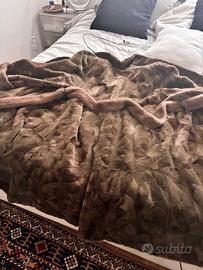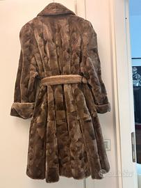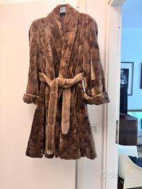 Cappotto/mantella in gole di visone rasato, anni 80/90, color tortora. Ampia, modello a campana con balza e grandi risvolti nei polsi disegnato per essere portato aperto, perfetto per mostrare l'abito sottostante. Collo sciallato, senza bottoni, fodera integra e pulita Modello disegnato per essere portato aperto, perfetto per mostrare l'abito sottostante. Per un look più definito, si può chiudere con una spilla gioiello o la cintura di visone compresa . Taglia universale, a seconda dell’effetto desiderato Misure: spalle 45, ascelle 75, lunga 105. Ampiezza dell’orlo finale della balza 3metri e 80cm