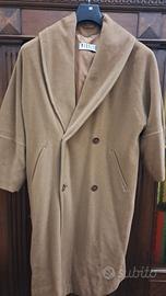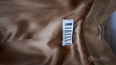 Cappotto Marella lungo con manica a forchetta e collo a scialle. Fatto del 55% di pura lana vergine e 25% di lana d'angora. Taglia 40 e colore cammello