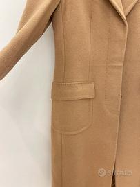 cappotto originale Max Mara (Prima Linea), modello a vestaglia, colore nero. Il capo è stato indossato soltanto due volte per eventi formali ed è in condizioni impeccabili, pari al nuovo di negozio (10/10).