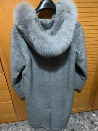 Cappotto da donna, di lana e alpaca, di colore azzurro grigio, con cappuccio rifinito di pelliccia di volpe finlandese. Taglia 44-46 Misure: lunghezza 110 cm ( stato accorciato e il fondo non è proprio perfetto ma assolutamente migliorabile),ascella-ascella cm58, manica reglan 45 cm a partire dall’ascella e 75 cm a partire dal collo. È leggero, comodo e ha buona vestibilita’.