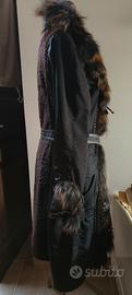 cappotto caldo e particolare foderato veste 46 -48 lunghezza ginocchio colore marrone scuro con inserti pell