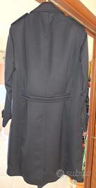 Cappotto invernale elegante, con abbottonatura doppio petto, della Marina Militare. Tessuto impermeabile, pettinato e morbido al tatto, colore blue navy. Taglia 52/4/L, può essere comodamente indossato da chi è alto circa 180 cm e pesa circa 85 kg. Nuovo, mai usato. Larghezza spalle circa 50 cm. Lunghezza circa 111 cm più 6 cm di colletto.