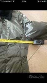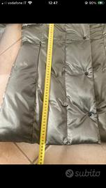 Cappotto imbottito Moncler vintage in ottime condizioni taglia 44 cin bottoni a pressione, tasche laterali e collo e polsi in pelliccia color grigio argento