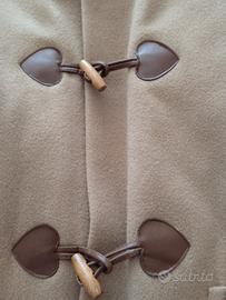 cappotto vintage montgomery con alamari in lana con cappuccio e fodera trapuntata colore cammello forse in foto sembra più chiaro