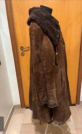 cappotto da passeggio (stroller) in stile western, in pelle scamosciata marrone e pelliccia marrone