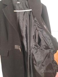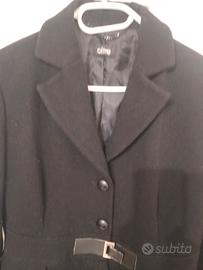 Cappotto nero da donna a tre quarti con quattro bottoni. Due tasche con pattina. Lunghezza cm 83. Taglia 46. Cappotto sfiancato che lo rende ancora più femminile. Come nuovo indossato poche volte. Lana 70% taglia 46