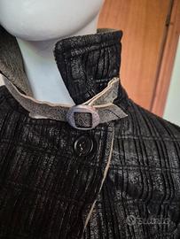 Molto caldo in quanto interamente foderato con pelliccia sintetica, vesta da una small ed una large. Imperfezioni: mancano 3 bottoni e la cintura, che ho sempre utilizzato annodata sul retro per definire il girovita è rovinata, come da foto. tutto il resto è perfetto. le fettucce allineate che costituiscono l intero rivestimento non presentano imperfezioni. cappotto stupendo