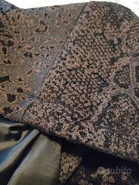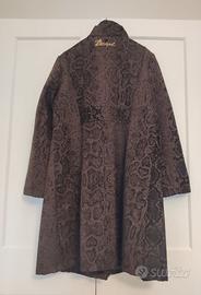 Cappotto nero pitonato e foderato marca Desigual taglia 48. Svasato, arriva al ginocchio e slancia la figura.