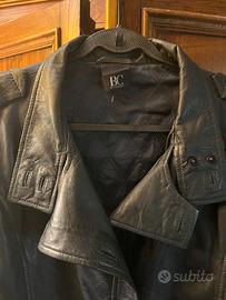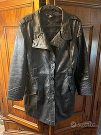 Cappotto Vera Pelle Donna, imbottitura interna trapuntata, la taglia è 46 Europea, il colore è nero, il cappotto in pelle è usato ma ben tenuto, la qualità della pelle è ottima, è molto morbida, ha solo una piccola imperfezione che non si avverte vicino alle due asole del collo, le foto sono vere non ritoccate.