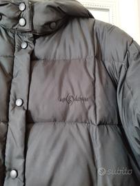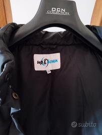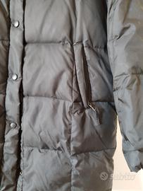 Vendo cappotto nero lungo piumino. Ha un cpapuccio e tasche con chiusura a cerniera. La chiusura del cappotto è con zip e bottoni a clip. È della marca up&down. È stile bomberino con dentro le piume, che, come si vede dalle foto, posso uscire dalla fodera interna e dalle cuciture. Sulla giacca è scritto 14, quindi credo sia quella la taglia.
