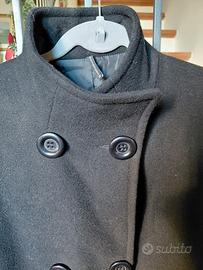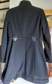 cappotto colore nero, taglia 38, marca Naf Naf lana 80%, doppio petto con cintura in vita, maniche con polso e bottone, spacco dietro