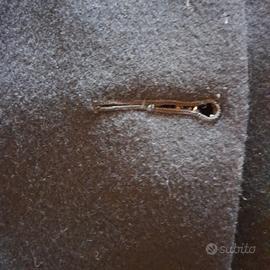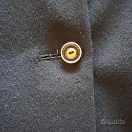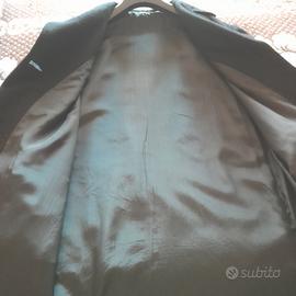 Cappotto nero sartoriale degli anni '60. Allacciatura a tre bottoni, che sono stati sostitui rispetto agli originali molto più grandi. Per tale motivo le asole sono state parzialmente ridotte, come da foto, ma che possono essere ripristinate.
