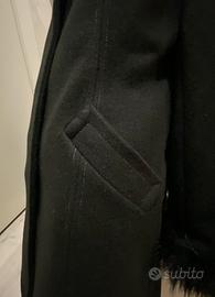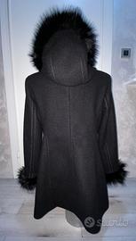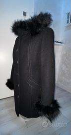 Cappotto nero tg. 42/44 in lana con inserti in pelliccia
