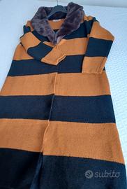 Cappottino nuovo, colori nero e senape, collo in ecopelliccia marrone. Lunghezza cm 110 spalle cm 44 taglia M. Bottoni a pressione a scomparsa. Mai messo.